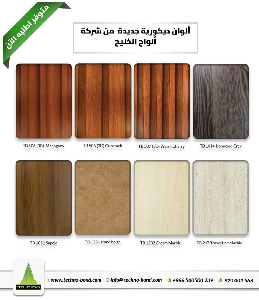 كما تُستخدم منتجات Techno Bond تكنوبوند في تصميم الجدران الداخلية بفضل متانتها وثبات ألوانها وقدرتها على الانسجام مع عناصر التصميم المختلفة. وتُعد هذه الألواح خيارًا مثاليًا لأصحاب المشاريع الذين يرغبون في دمج عنصر الفخامة مع الاستخدام العملي، مع ضمان مقاومة ممتازة للخدوش والحرارة.